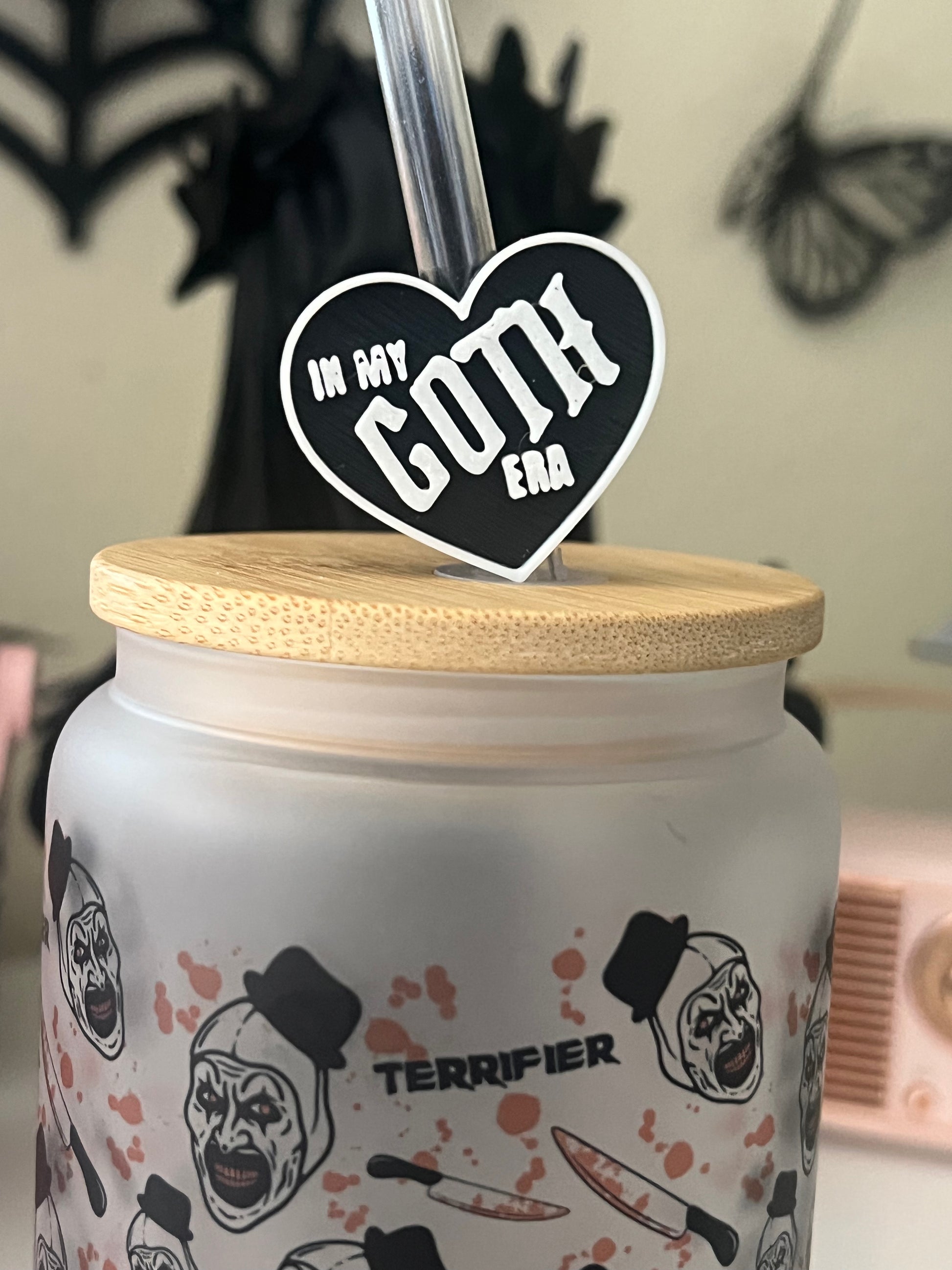 In My Goth Era black heart straw topper